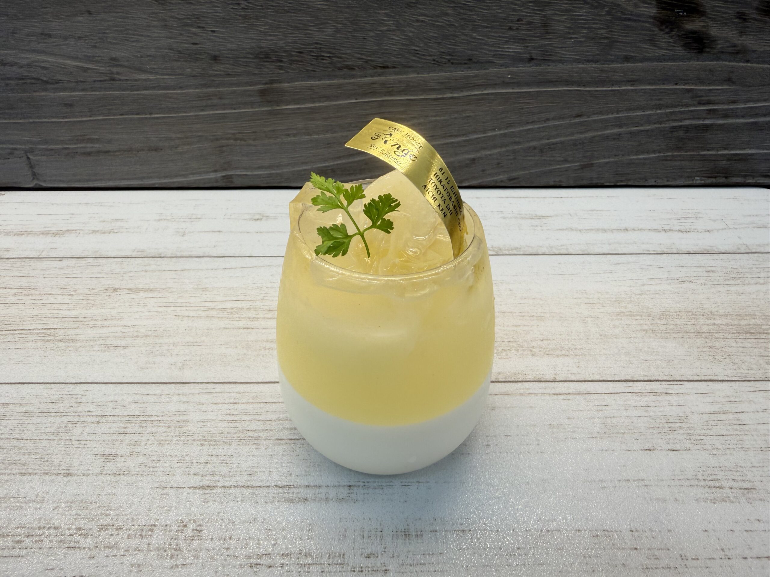 香り豊かな杏仁豆腐に和梨を使用し、レモンゼリーで飾りました。