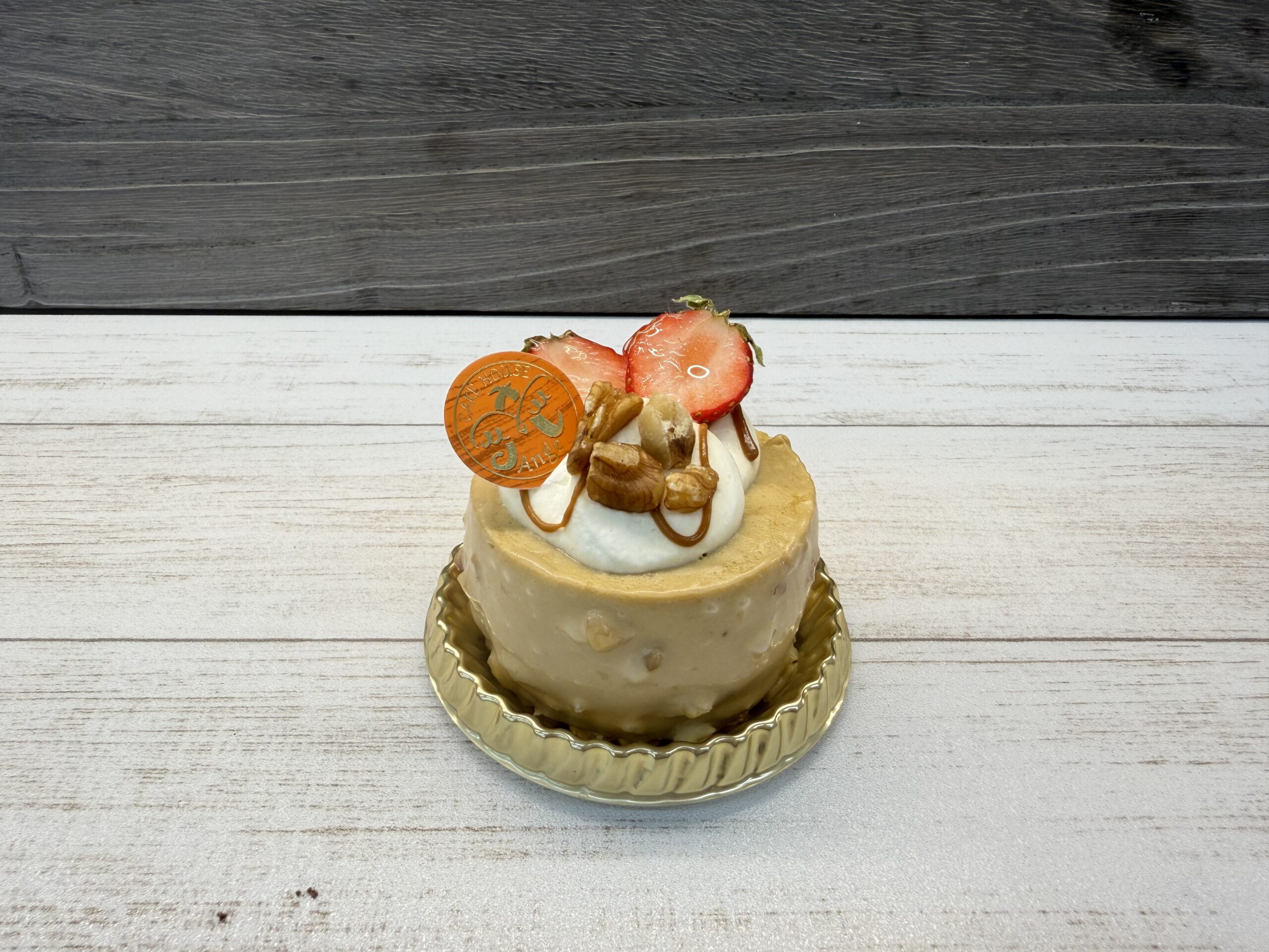 カフェオレムースに香ばしく焼いた胡桃でアクセントを付けました。
